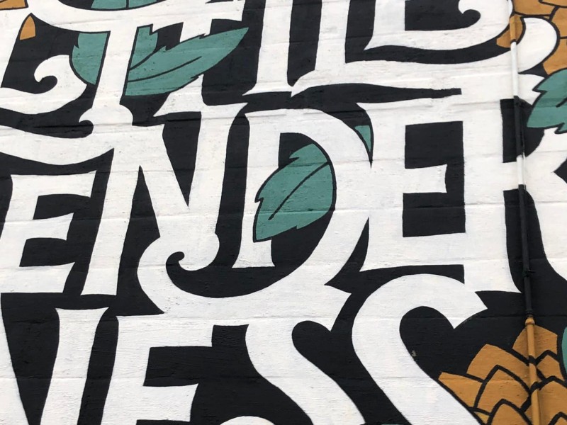 “I wasn’t finding dissent in the street art here… I was thinking, where is the angst?” Lang recalls. Three words recur throughout the Mad Street Art project: “Tender,” “forbidden,” and “cute.” The first is a play on a mural on the 1100 block of Willy Street that honors Otis Redding (who died in a 1967 plane crash on Lake Monona) and his song “Try A Little Tenderness.” It’s clearly also a reference to the warm colors and optimistic sentiments that dominate Madison’s street-art-inspired public art pieces. More importantly, the adjective refers to the role that young artists and volunteers, including students from Madison public schools and teenagers incarcerated at the Dane County Juvenile Detention Center, play in creating public-art projects like Madison Mural Alley, and that’s a big part of what makes this art political even when the politics aren’t completely obvious.