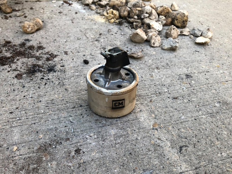 I have one of Defense Technology Inc.’s line of “chemical agent” canisters. That’s a euphemism for a tear-gas grenade. I found it on the ground on State Street while covering the riots there on May 30. As best I can tell, it’s the top third of a device that pops apart into three pieces, each one spewing clouds of noxious chemicals that burn the eyes, inhibit breathing, send people running down the street in near-blind stampedes, and linger in the air so long and so powerfully that they’re bound to harm people nearby who had nothing to do with dispersing a crowd.