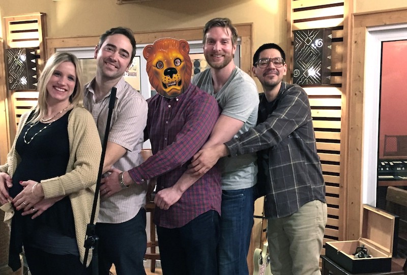 Cribshitter in the studio recording its new album. From left to right: Christine Christenson, Karl Christenson, The Fucking Lion, Kyle Ritchie, and Eric Caldera.