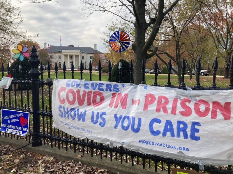 After months of letters, phone calls, a petition hand-delivered to Evers, and June’s “Drive to Decarcerate” protest in Madison, Evers failed to take further action or even come out publicly to acknowledge the problem. So organizers at WISDOM, a Milwaukee-based interfaith group working to end mass incarceration in Wisconsin, launched a vigil-like protest this October outside the Governor’s Mansion in Maple Bluff, a small affluent village that borders Madison. WISDOM’s goal is to post at least two protestors in front of the mansion every day, until Evers holds a press conference drawing attention to the problem. Those interested in taking part can sign up for shifts.