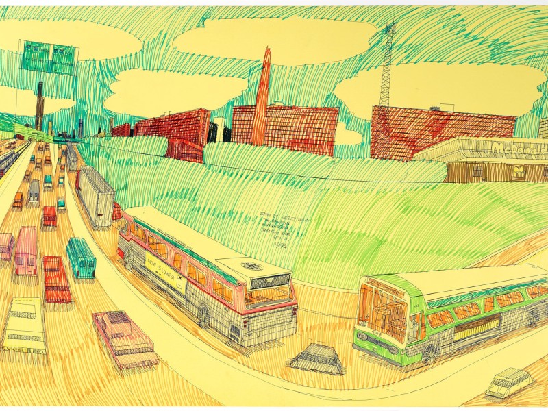 Image above: Wesley Willis, “Dan Ryan Expressway Past 51st Toward 47th St.,” 1994. Images courtesy of Madison Museum of Contemporary Art.