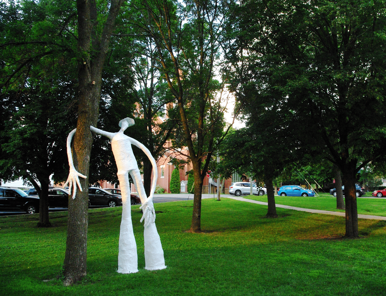 One of them, Brian Sobaski, sculpts larger-than-life, anthropomorphic animals (often in states of energetic movement) using straw, hay, twine, welded steel and wood. His piece in this year’s festival, Love Your Honey, is a massive beehive—complete with live bees.