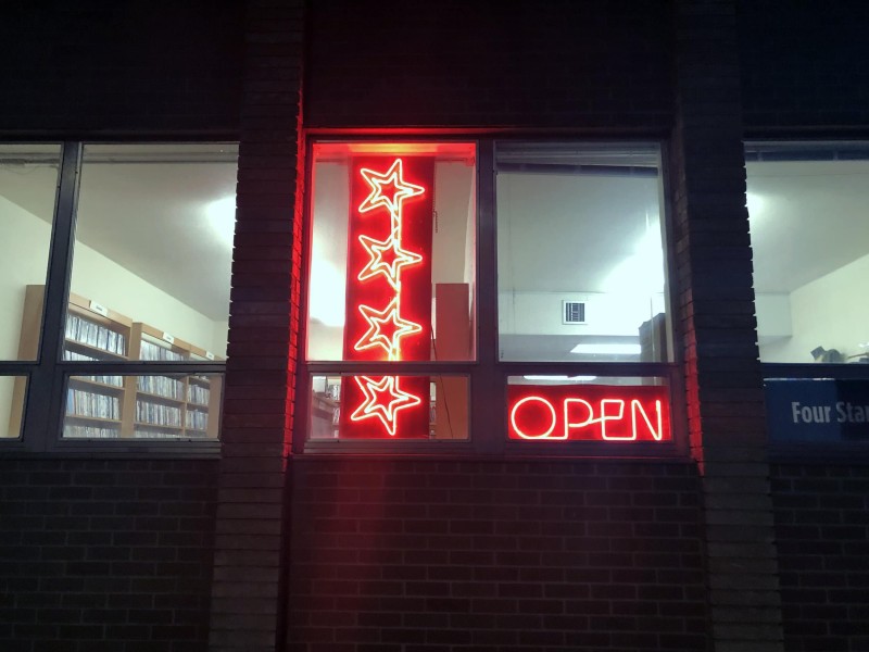 Peterson and crew are up and running, with a little more unpacking left to do. Four Star will celebrate its defiant survival and hopefully kick off a fruitful chapter with this Saturday’s grand re-opening party, featuring wide-ranging DJ sets from DJ Hanna of the TV Dinner DJs crew and Dan Woodman, aka Cult House Sound. Four Star will be offering some complimentary drinks, as well as food from Umami. Attendees are also encouraged to browse and rent some DVDs.