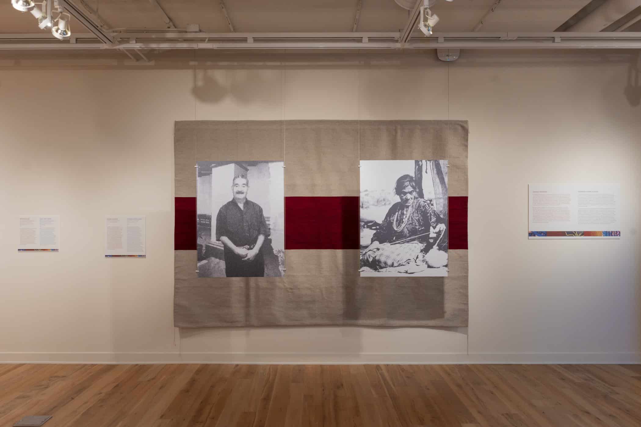 What began as Zoom chats at the beginning of the COVID-19 pandemic evolved into long-distance exchanges of artwork and eventually an exhibition rife with the richness of intersections. Mace and Ruiz worked together on “Shared Histories,” an art piece made of cotton, wool, beadwork, and glass which explores the connections between Diné and Zapotec culture to show the relationship of Indigenous experiences and trauma. Mace says, “The fabric has a unique history that is felt and this is passed down from generation to generation.” In both cultures, death is celebrated in the context of family and community, allowing for memories to live on even when someone has passed away. Working with textiles and family photographs, Mace cultivated a deep reverence toward the history of making. “Our histories are erased and our work is commodified,” Mace says. “[Indigenous art] should not be seen simply as a static entity but as one that is thriving.”