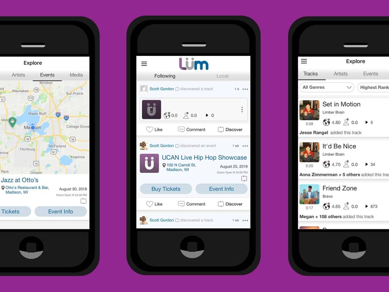 Getting people in the local tech or music community to talk on the record about their impressions of LÜM has been tough—people don’t want to pick on a group of young entrepreneurs launching their first big venture, and both of these worlds are small. Some expressed concern about the company’s apparent lack of diversity, and whether it will become another platform that doesn’t generate income for the artists and users who populate it. Also, in all the rather credulous local press coverage of the app I’ve seen thus far, few reporters seem to have actually bothered to kick the tires on this thing, even though the company was happy to share early access with journalists. (Fellow media people including myself: If Madison’s going to turn into a real tech town—which I’m not so sure is even a good idea—we need to be more diligent about being hands-on with what developers are pitching.) Milwaukee Magazine described LÜM as having an “anti-music-corporation stance,” which is a silly thing to say about people who are launching a music corporation, however young or well-intentioned they may be.