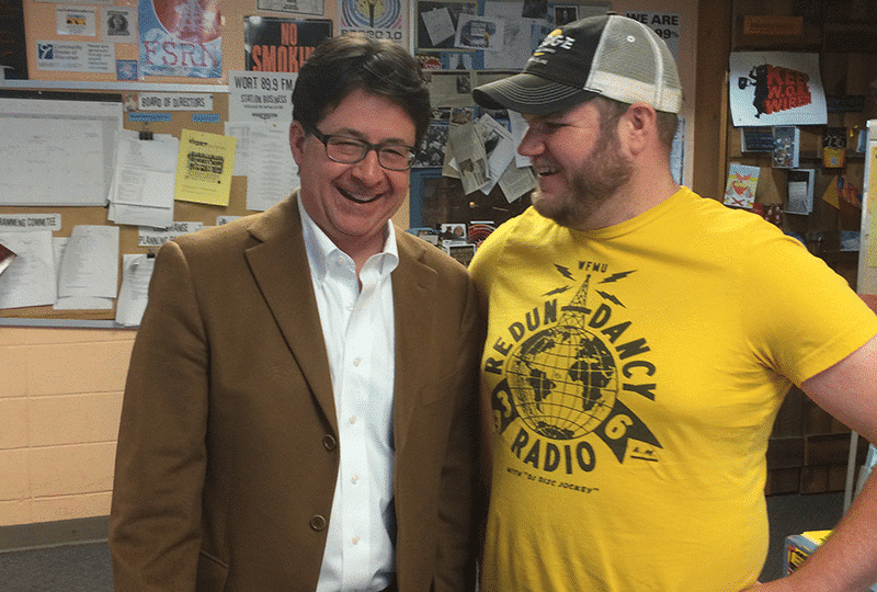 In the six or so months that I’ve been a producer for the show, I’ve never seen a guest garner so much interest. There were literally self-described “fan-girls” who showed up and took photos with Strang at the WORT studio on Bedford Street in downtown Madison. Being a fan myself, how could I pass up an opportunity to take a photo with the man who had just days before been described as “Like Atticus Finch, But Not Racist”? I cracked a silly comment about ladies on the Internet having crushes on him, and, as was captured in the photo, he laughingly said something to the charming effect of “Ha! My wife thinks they’re crazy!” and so I tossed it out there onto the Internet, at which point the appropriately hashtagged ball began rolling.