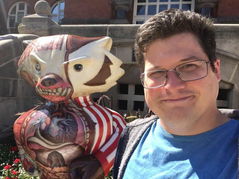 Bucky On Parade’s ambitious act of college sports branding stirred up a lot of thoughts and feelings about what we should do with our public-art resources. Not everyone took kindly to me unpacking that. Let people enjoy things, they said. Why the negativity, they said. It’s a cancer research fundraiser, they said. Someone even (half-jokingly, I think/hope) asked if I was “happy” when a Bucky statue got thrown into Lake Mendota. I wasn’t, but they could have left it in there for the summer, then hauled it up all crusted with those razor-sharp invasive zebra mussels. Ecological Whoopsie Bucky! For science. While having all these thoughts, I slowly but surely developed a morbid fascination with Visible Bucky. He’s just dark and vivid enough to suggest something deeper than the dead-eyed anatomical models you might encounter in a doctor’s office. There’s mystery of a kind in the depths of those half-exposed guts.