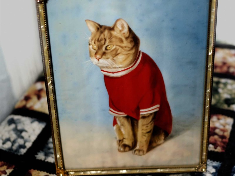 David Esmond: I found that hand-painted framed photo of a cat in a sweater years ago at a thrift store and took a photo of it. Someone said it would make a good album cover and Dan came up with the title from there.