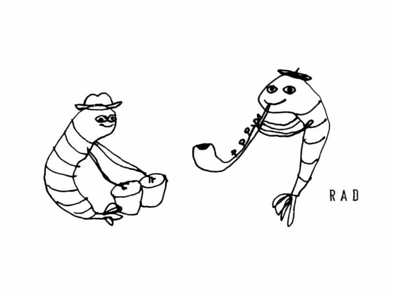 What I love about Duggan’s work is that she can use that really simple approach to encapsulate so much. Sometimes it’s playful. Sometimes it’s defiant. And sometimes it just is because it is. One of my favorite Duggan works is called “jazzy shrimps,” and it just shows a couple of little shrimps in hats, playing bongos and a saxophone. It reflects a style she’s developed over the years, bucking her own doubts and a lot of advice.