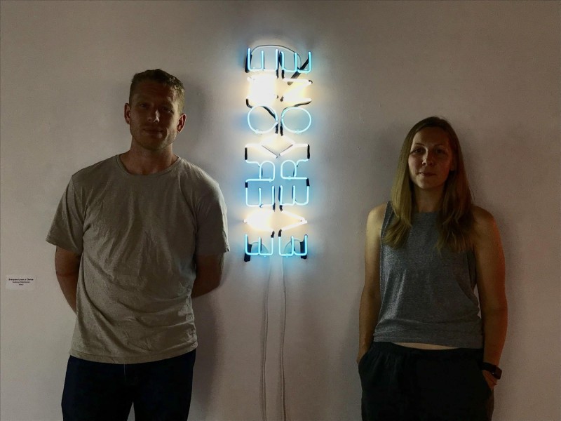 Andrea Oleniczak and Taylor Kurrle examine the language of equality, unity, and separation in show of neon works at Gallery 1308.