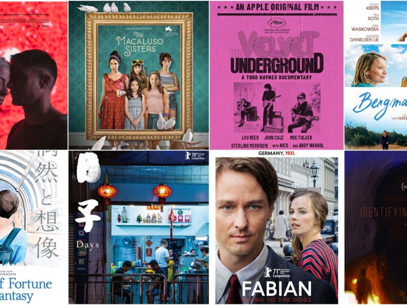 Header image: From top left to bottom right in order of their screening dates, an international poster collage of all eight Spotlight Cinema films. They begin with “Ema” on October 6, continue with “Wheel Of Fortune And Fantasy” on November 3 (second row), and conclude with “Identifying Features” on December 1.