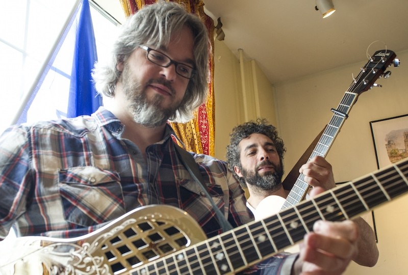 Guitarists Chris Ruppenthal and Cedric Baetche first formed the duo Mal-O-Dua out of a shared love for the great jazz guitarist Django Reinhardt (or more precisely, the intersection of jazz and European folk styles that Reinhardt represents), but from the start it was an idiosyncratic blend of styles. Ruppenthal, a Madison native, plays in Caravan Gypsy Swing Ensemble and excels in prickly, fleet-fingered, Reinhardt-inspired solos. Baetche, who grew up in Reims in northeastern France, cites the distinctively American fingerpicking style of Merle Travis as his primary inspiration, but also contributes flirtatious, French-language baritone vocals. This blend of swing, country and French music has expanded over the years to include slack-key guitar, a fingerpicking style developed in Hawaii (the term “slack key” refers to loosening some of the strings to put the guitar in an open tuning). The band’s name is a phonetic spelling of “mal aux doigts,” a French phrase for “aching fingers.” Recently Mal-O-Dua has settled into a regular gig at Mickey’s Tavern, playing there from 5:30 p.m. to 8 p.m. on the second and fourth Thursdays of the month. This coming Thursday, the two will celebrate a new EP of Hawaiian-style instrumentals, Mahalo Dua, and, weather permitting, will mark the gig’s move outside to the Mickey’s back patio for the next few months. The duo has other shows coming up at Tempest Oyster Bar, La Fete De Marquette and elsewhere, but the Mickey’s residency seems to suit them best: While there’s plenty of history and skill in the music, Mal-O-Dua’s playful, loose style travels well in a crowded, sometimes pretty chatty happy-hour setting. Baetche and Ruppenthal met with me last week to discuss the new CD and how they carved out this particular swing-Hawaiian niche.