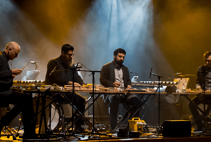 Adam Sliwinski: It varies from project to project, and some of it has to do with, what are your common languages and common tools? So, when we work with Steve Reich, we all went to classical music school, he hands us a score with notes on it, and that’s part of where we begin from. We work with Matmos, two absolutely brilliant guys, fantastic musicians, not people who studied classical music, don’t use notation, and so, “Oh! Where are we gonna start? How are we gonna start putting our pieces together if not with that common language?” And [Drew Daniel of Matmos] is like, “Oh, well, I use this sequencing software, you can see on my screen how the piece is built,” and you’re like, “Oh, OK, I can see of of that,” or if somebody is more about improvisation, somebody else is a kind of hybrid of things. And so a lot of what you need to work out has to do with, “Where do we begin together?” And then from there, a lot of different wonderful musicians from different genres want a lot of the same things in the end, which is to make something that feels and sounds great on stage. You end up having a lot in common at that point, but when you begin, you find out, what are our common tools and what’s our common language?