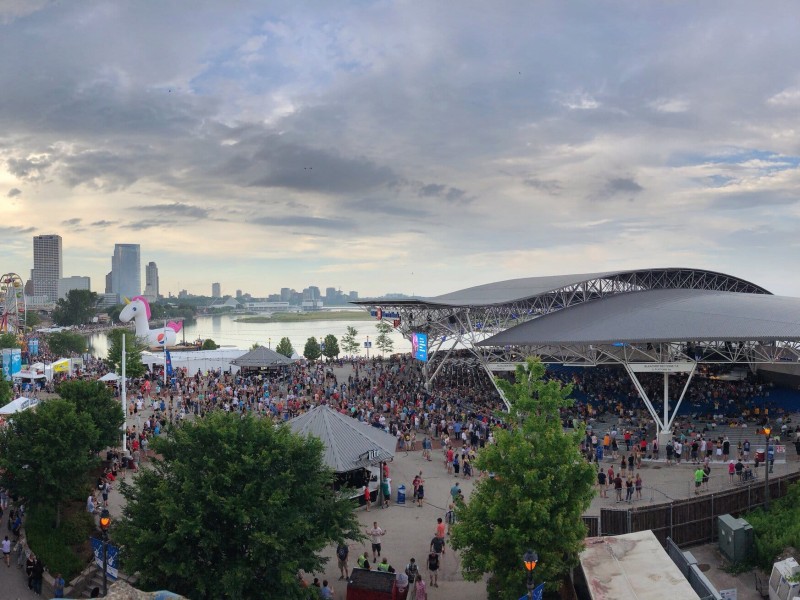Photo: Crowds spread out across the Summerfest grounds in 2019, with the Milwaukee skyline in the background. Photo by Ryan Dickey on Flickr.