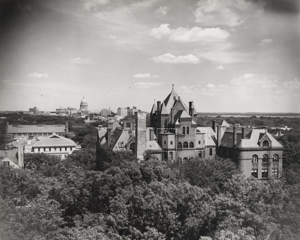 Some of the more significant changes to Science Hall are associated with the various departments of the Medical School, which occupied much of the building in the first decades of the 20th century, as Merle Curti and Vernon Carstensen note in The University Of Wisconsin: A History, 1848-1925. To accommodate growing demand, the School opened up many previously underused areas of Science Hall. In particular, the fourth and fifth floors, which had been considered attic space when the building was constructed, were reconfigured to house anatomy and dissection rooms. Cadavers were delivered to a stairway in the rear of the north wing (which has since been reconfigured as a ground-floor window) and then moved to the cold storage and embalming rooms in the basement. A winch in the north tower transported the cadavers to the upper floors of the building, as documented in National Register of Historic Places records and a history of campus buildings.