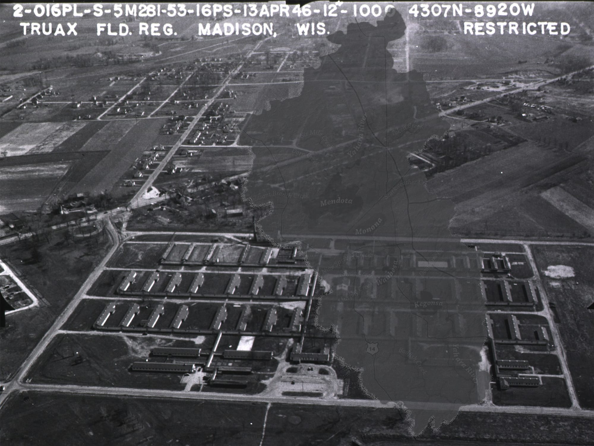On a map, Starkweather Creek shows the clear links between what happens at Truax Field and what happens in the various neighborhoods and bodies of water downstream. The creek consists of a North Branch and an East Branch. The North Branch originates in a mostly industrial area to the northeast of Truax. It descends in a series of U-shaped passages, almost like a sports bracket turned on its side, at one point cutting west across the breadth of the airport, eventually turning south through the Eken Park and Darbo-Worthington neighborhoods, crossing under Milwaukee Street, then turning east to cross Fair Oaks Avenue en route to the Eastmorland neighborhood. The East Branch starts just above Sycamore Avenue, angling southwest past the east-side Walmart and under Stoughton Road, to meet the North Branch on the edge of Eastmorland. From there, Starkweather Creek heads south behind Garver Feed Mill, under a picturesque bridge in Olbrich Gardens, and into Lake Monona. The flow keeps heading south through the Yahara River and its chain of lakes, until the Yahara meets the Rock River outside of Janesville.