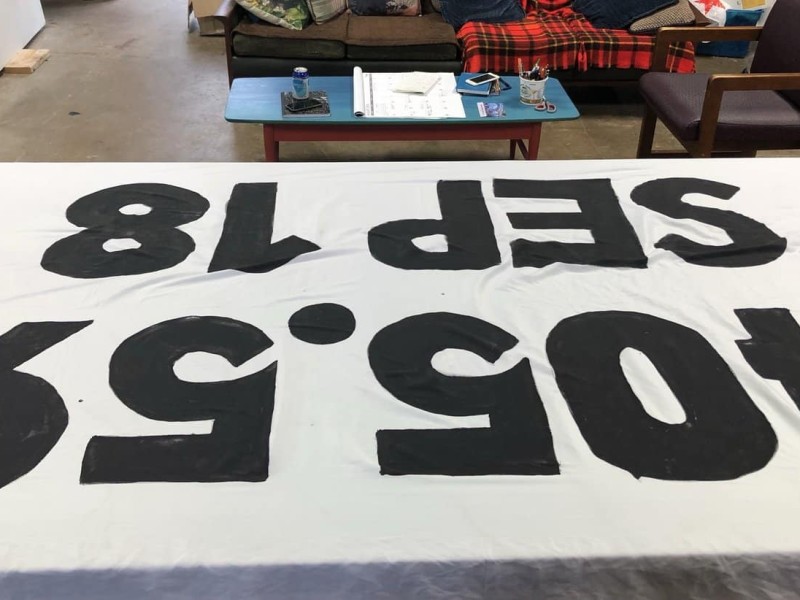 “A small group of people—480—can occupy the space of thousands,” Castro says. The big block letters on the sheets, first outlined from stencils and then tediously filled in with black paint, draw inspiration from conceptual artist On Kawara’s Today series. (When I visited Castro and Dane Arts Mural Arts apprentice Lucy White, a junior at Shabazz City High School, this Monday, they were just four signs in, filling in the black letters with surprisingly delicate strokes.) There isn’t a lot of context on a big sheet that just says “405.59 SEP 18,” but put together, they’re meant to get people to reflect on the fact that we’ve done so little about climate change, even though the signs have been clear for decades.